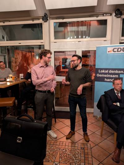 Ein besonderes Highlight des Abends war das Jubiläum des ehemaligen Vorsitzenden der Syker Stadtratsfraktion, Markus Stier. Seit 25 Jahren ist er nun Mitglied der Christlich Demokratischen Partei Deutschlands. Unser Vorsitzender Jan Lindemann gratulierte Stier im Namen des Bundesvorsitzenden Friedrich Merz, des Landesvorsitzenden Sebastian Lechner und des Kreisvorsitzenden Axel Knoerig.